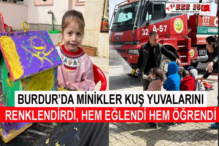 Öğrenciler, Orman İşletme personeli ile birlikte kuş yuvalarını renklendirdi, orman yangınları ve orman koruma konularında eğitim verdi.