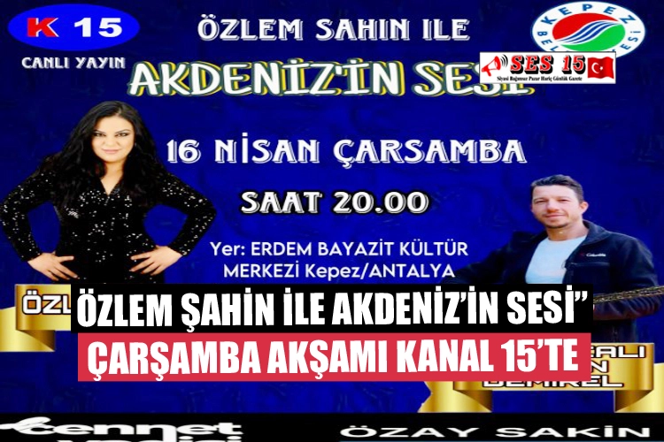 Kanal 15 ekranlarında 15 günde bir Çarşamba akşamları yayınlanan “Özlem Şahin ile Akdeniz’in Sesi” programı 16 Nisan Çarşamba akşamı canlı yayınla sizlerle olacak.