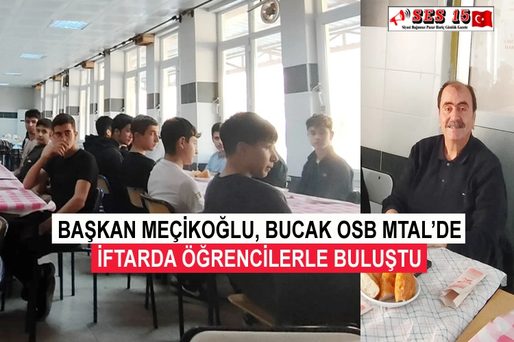 Bucak Organize Sanayi Mesleki Ve Teknik Anadolu Lisesi tarafından Milli Eğitim Bakanlığı’nca uygulamaya konulan Ramazan ayı boyunca liselerde pansiyonda kalan öğrencilere yapılması planlanan "İftarda Konuşalım" programında Bucak Ticaret ve Sanayi Odası Başkanı Hasan Yalçın Meçikoğlu, öğrencilerle buluştu. Başkan Meçikoğlu, iftar öncesinde okul pansiyonunda öğrencilerle sohbet havasında "Anıları İnşa Etmek" başlıklı konuşmasında tecrübelerini ve anılarını paylaştı.