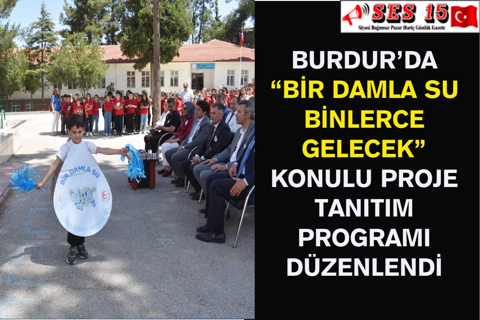 Burdur Cumhuriyet İlkokulu öğrencilerinin BESTE( Burdur’da Etkin Sürdürülebilir Tamamlayıcı Eğitim) Projesi kapsamında su kaynaklarının korunması ve israfının önlenmesi için farkındalık oluşturmak amacıyla “Bir Damla Su Binlerce Gelecek” adlı projenin tanıtım programı düzenlendi.