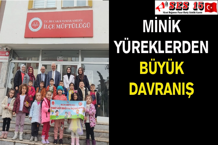 Bucak Mehmet Akif Ersoy 4-6 Yaş Kur'an Kursu öğrencileri, müftülüğün başlatmış olduğu "Bir Bot-Bir Mont" kampanyası kapsamında harçlıklarını bir araya getirdiler.