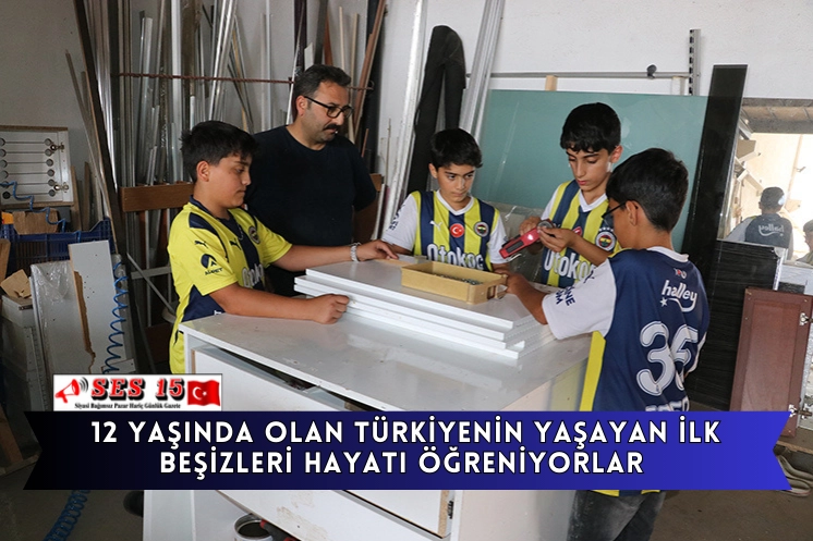 Türkiye'nin yaşayan ilk beşiz çocukları olarak 12 yıl önce dünyaya gelen Muhammet Emin, Ömer Faruk, Yunus Kerem, Davut Ege ve Zeynep Muteber, babalarının "beşizler" ismini verdiği mobilya imalathanesinde yaz tatilinde çıraklık yaptı.