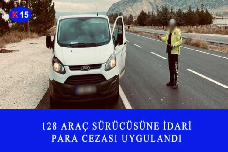 (17) araca/sürücüsüne ise Karayolları Trafik Kanununun diğer ilgili maddelerinden toplam (128) araca/sürücüsüne Trafik İdari Para Cezası uygulanmış, (27) araç trafikten men edilmiştir. Kamuoyuna saygıyla duyurulur.