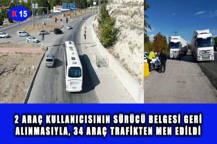 (3) araca/sürücüsüne, 65. maddesi (Taşıma kapasitesinin üstünde yük ya da yolcu taşımak.) (2) araca/sürücüsüne, 48/5 maddesi (Alkollü olarak araç kullanmak.), (1) araca/sürücüsüne, 36. maddesi (Sürücü belgesi olmadan araç kullanmak.), (2) araca/sürücüsüne, 91. maddesi (Zorunlu mali sigortasını yaptırmadan trafiğe çıkmak.), (32) araca/sürücüsüne, Karayolları Trafik Kanununun diğer ilgili maddelerinden toplam (114) araca/sürücüsüne Trafik İdari Para Cezası uygulanmış, (2) sürücü belgesi geri alınmış, 34 araç trafikten men edilmiştir. Kamuoyuna saygıyla duyurulur”.