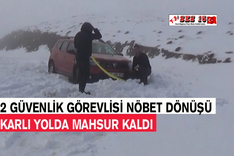 Rüzgar enerjisi santralinde görevli 2 güvenlik görevlisinin içinde olduğu otomobil, yolda kara saplandı.