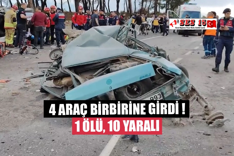 Balıkesir'in Savaştepe ilçesinde 4 aracın karıştığı zincirleme trafik kazasında, 1 kişi hayatını kaybetti, 10 kişi yaralandı.