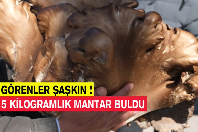 Terazi yardımıyla 5 kilogram olduğu belirlenen mantar, görenlerin dikkatini çekti.