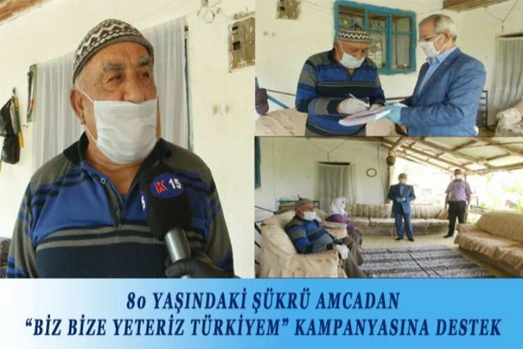 Bucak Kuşbaba Köyünden 80 yaşındaki Şükrü Çetin, pazarda sattığı cevizden elde ettiği bin liralık geliri Cumhurbaşkanı Recep Tayyip Erdoğan’ın başlattığı “Biz Bize Yeteriz Türkiyem” kampanyasına bağışladı. Şükrü Amca yaptığı bağışla tüm vatandaşlara ve diğer köylere de örnek oldu. Şükrü Çetin, bağışladığı bin TL’yi bugün evinde Bucak Kaymakamlığı Vefa Sosyal Destek Grubu Başkanı, Tarım ve Orman İlçe Müdürü Ahmet Gönenç’e teslim etti. Şükrü Çetin’in eşi de Milli Dayanışma kampanyasına 50 lira bağış yaparak destek verdi. Tarlasına diktiği cevizlerden elde ettiği bin TL’yi “Biz Bize Yeteriz Türkiyem” kampanyasına bağışlamaktan mutluluk duyduğunu ifade eden Şükrü Çetin, kampanyada emeği geçen herkese teşekkür etti. Kuşbaba Köyü Muhtarı Mustafa Sarıkaya, Milli Dayanışma halkına duyarlılık gösteren köy halkına teşekkür etti. Şükrü Çetin’in “Biz Bize Yeteriz Türkiyem” Kampanyasına yaptığı bağışın örnek bir davranış olduğunu vurgulayan Bucak Kaymakamlığı Vefa Sosyal Destek Grubu Başkanı ve Tarım ve Orman İlçe Müdürü Ahmet Gönenç bu davranışından dolayı kendisine teşekkür etti.