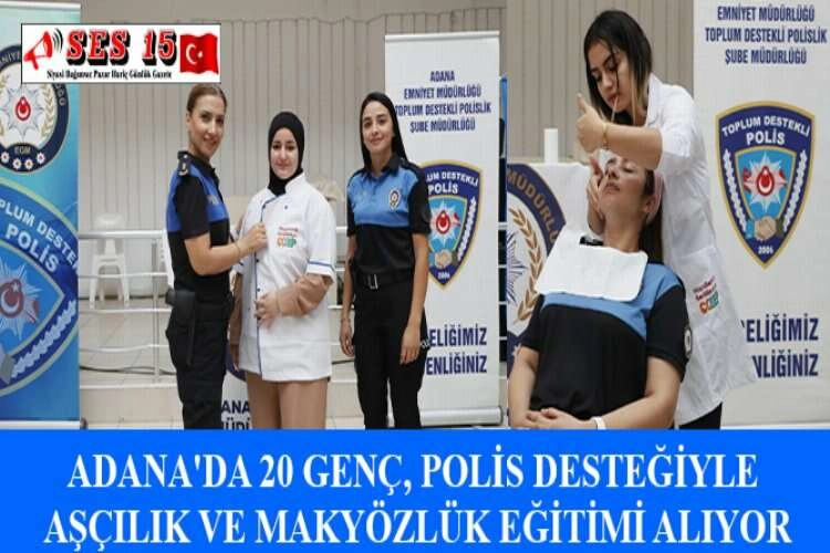 Adana'da polislerin desteğiyle gerçekleştirilen aşçılık ve makyözlük kurslarında 20 genç eğitim görüyor. İl Emniyet Müdürlüğü Toplum Destekli Polislik Şubesi, "Hayallerimiz Renkleniyor" projesi kapsamında 20 gence yönelik aşçılık ve makyözlük kursu düzenledi. Polisler, Yüreğir Halk Eğitim Merkezi'ndeki kursa katılan gençlere ziyarette bulunarak önlük hediye etti. Makyözlük eğitimi alan genç kızlar da meslek edinmelerini destekleyen kadın polislere makyaj yaptı. AA