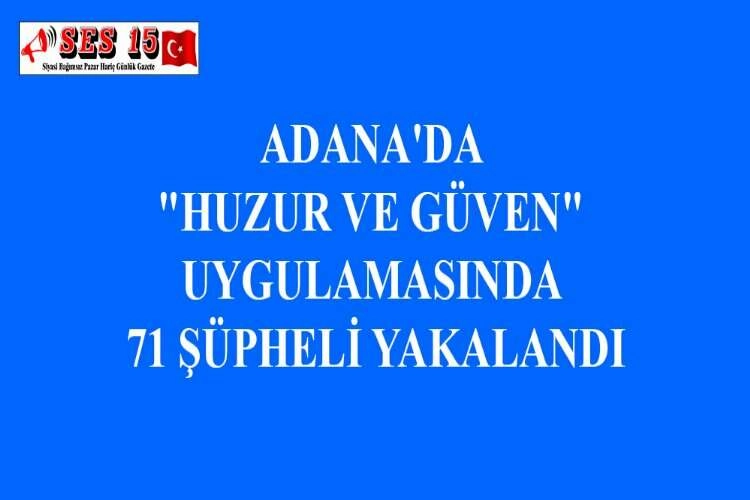 Adana'da polis ekiplerince düzenlenen "huzur ve güven" uygulamasında farklı suçlardan aranan 71 kişi yakalandı. İl Emniyet Müdürlüğü tarafından bin 836 polisle kent genelinde gerçekleştirilen uygulamada, durumundan şüphelenilen kişilerin Genel Bilgi Toplama (GBT) kontrolü yapıldı. Helikopter ve dron destekli uygulama kapsamında farklı suçlardan aranan 71 zanlı yakalandı. Ekipler 25 ruhsatsız tabanca, 3 ruhsatsız av tüfeği ve 3 kurusıkı tabanca,114 uyuşturucu hap ile bir miktar uyuşturucu ele geçirdi. Uygulama noktalarında durdurulan araçları trafik yönetmeliği kapsamında da inceleyen ekipler çalıntı olduğu değerlendirilen 5 araç ele geçirdi, 72 sürücüye 391 bin 943 lira ceza uyguladı, 4 aracı trafikten men etti. Umuma açık 145 iş yerini de denetleyen ekipler, kavşaklarda dilencilik yaptığı tespit edilen 23 kişiye 14 bin 191 lira para cezası uyguladı. AA