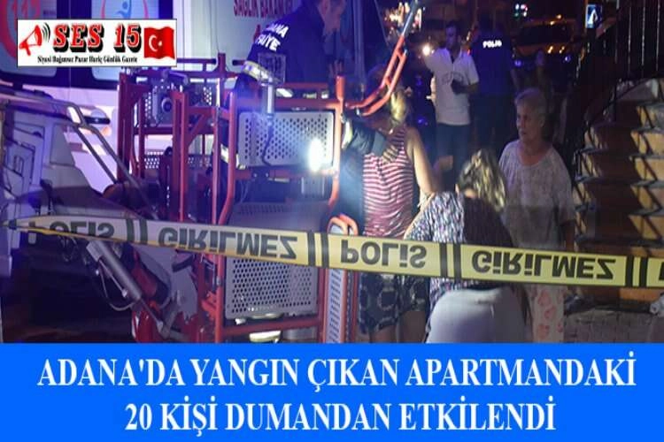 Adana'nın merkez Seyhan ilçesinde bir apartmanda çıkan yangında dumandan etkilenen 20 kişi hastaneye kaldırıldı. Yeşilyurt Mahallesi'ndeki 4 katlı binanın bodrum katında henüz belirlenemeyen nedenle yangın çıktı. Haber verilmesi üzerine olay yerine polis, itfaiye ve sağlık ekipleri sevk edildi. Binadaki yoğun duman nedeniyle dairelerinde mahsur kalanlar sepetli itfaiye aracıyla kurtarıldı. Köpeğiyle birlikte mahsur kalan bir kadın ise itfaiye ekiplerince tahliye edildi. Kadın sonrasında köpeğine sarılarak gözyaşı döktü. Ekiplerin müdahalesiyle söndürülen yangın sırasında dumandan etkilenen 20 kişi ambulansla çevredeki hastanelere kaldırıldı. Bu kişilerin sağlık durumunun iyi olduğu öğrenildi. İtfaiyece kontrol altına alınarak söndürülen yangın nedeniyle bodrumda hasar oluştu. AA