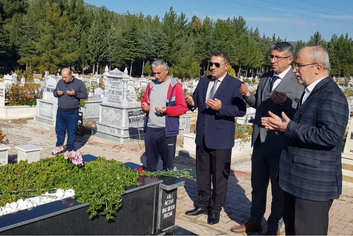 Burdur'un Bucak İlçesinde 24 Kasım Öğretmenler Günü dolayısıyla ahirete irtihal eden, Bucak'ın eğitimine büyük emek vermiş merhum öğretmenler mezarları başında anıldı. İlçe Milli Eğitim Müdürü Hakan Camcıoğlu, Oğuzhan Mesleki ve Teknik Anadolu Lisesi Müdür Başyardımcısı Bekir Erten ve okul öğretmenleri tarafından mezarı başında anılan merhum öğretmenlerin mezarına çiçek bırakıldı ve dua edildi.
