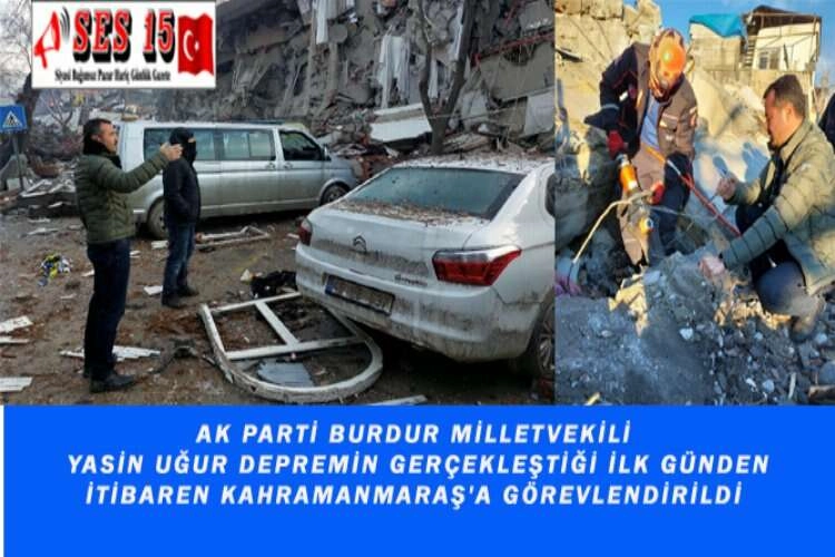 AK Parti Burdur Milletvekili Yasin Uğur Depremin gerçekleştiği ilk günden itibaren Kahramanmaraş'a görevlendirildi Milletvekili Yasin Uğur, Kahramanmaraş'ta sürekli olarak enkazlarda kurtarma ekiplerine yardımda bulundu. Uğur, Kahramanmaraş'ta bulunduğu süreçte Anneannesi Zeynep Aksoy vefat etti ama cenazesine katılamamıştı. Cuma günü gece geç saatlerde Bucak'a geldi ve ailesine başsağılığı diledikten sonra, Deprem bölgesinden yaralı hale Bucak'a getirilen vatandaşları ziyaret etti. Akabinde Bucak Belediyesinin başlatmış olduğu yardım kampanyasına destek oldu ve el birliği ile yardımda bulundu. Deprem bölgesindeki vatandaşlara ve kurtarma ekiplerine destek olmak ve onlara yardım etmek için hafta sonu akşam saatlerinde yeniden Kahramanmaraş'a yola çıktı. Milletvekili Yasin Uğur gece gündüz demeden hem Burdur’da hem Deprem bölgesinde vatandaşların yanında olmaya devam ediyor.