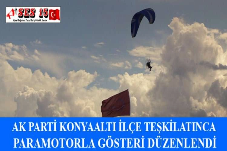 AK Parti Konyaaltı İlçe Teşkilatı tarafından paramotordan açılan dev Türk bayrağı ve Cumhurbaşkanı Recep Tayyip Erdoğan posteriyle gösteri düzenlendi. Konyaaltı Kent Meydanı'nda düzenlenen etkinliğe İlçe Başkanı Tayfun Bayar, yönetim kurulu üyeleri ve partililer katıldı. Türk bayrakları eşliğinde Konyaaltı plajı boyunca yürüyüş yapan partililer, vatandaşlara AK Parti'nin seçim bildirilerini dağıttı. AA