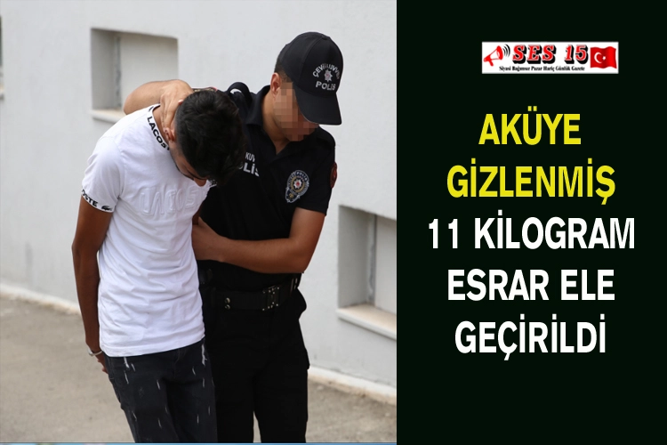 Aküdeki incelemede 11 kilogram plaka esrar bulan polis, S.A. (30) ve M.F'yi (23) gözaltına aldı.