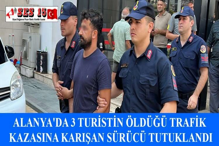 Antalya'nın Alanya ilçesinde safari aracındaki 3 turistin hayatını kaybettiği kazaya ilişkin gözaltına alınan otomobil sürücüsü tutuklandı. Mahmutlar Mahallesi D-400 kara yolunda 3 turistin öldüğü, 17 kişinin yaralandığı kazanın ardından gözaltına alınan safari cipiyle çarpışan otomobilin sürücüsü R.Ö'nün (39) jandarmadaki işlemleri tamamlandı. Adliyeye sevk edilen sürücü, çıkarıldığı nöbetçi sulh ceza hâkimliğince tutuklandı. Zanlının ifadesinde, safari aracından kendisine su tabancasıyla su sıkıldığı için direksiyon hâkimiyetini kaybettiğini öne sürdüğü öğrenildi. Kazada yaralanan safari aracının sürücüsü R.Y'nin ise tedavisinin sürdüğü ve taburcu edildikten sonra gözaltına alınacağı belirtildi. Alanya'da dün safari aracıyla otomobilin çarpışması sonucu safari cipindeki Rus turist Olga Zhukova (61) ile Kazakistan uyruklu Arailmy Nugmanova (34) ve Symbat Nasipgali (2) hayatını kaybetmiş, 17 kişi yaralanmıştı. Otomobil sürücüsü gözaltına alınmıştı. AA