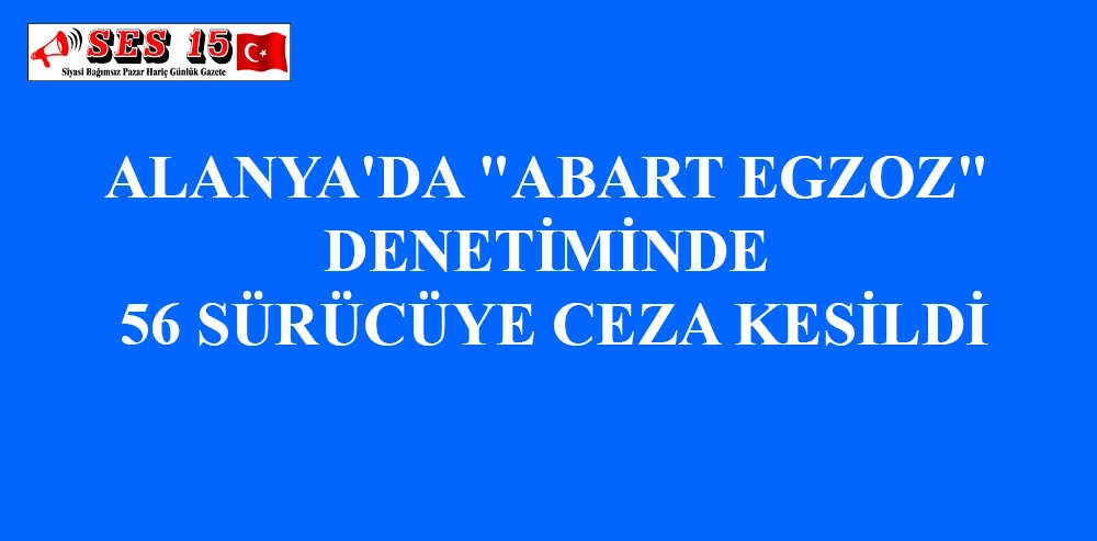 Antalya'nın Alanya ilçesinde yüksek sesle müzik dinleyen ve aracına abart egzoz taktığı belirlenen 56 sürücüye 49 bin 80 lira ceza uygulandı. İlçe Emniyet Müdürlüğü Trafik Denetleme Büro Amirliği ve Alanya İlçe Jandarma Komutanlığı ekiplerince, trafik güvenliğini tehlikeye düşüren araçlar üzerinde çalışma yapıldı. İlçenin farklı noktalarındaki denetimlerde, yüksek sesle müzik dinleyen, aracına abart egzoz takan ve süspansiyon sistemlerinde değişiklik yapan otomobil sürücüleri tespit edildi. Uygulamada, 5 araç trafikten men edildi, 56 sürücüye toplam 49 bin 80 lira ceza kesildi. AA