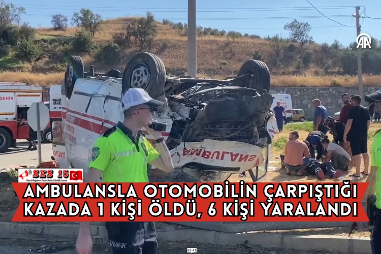 Manisa'nın Alaşehir ilçesinde ambulansla otomobilin çarpışması sonucu 1 kişi öldü, 6 kişi yaralandı. B.V. yönetimindeki 45 AAN 19 plakalı ambulans, Çataltepe Kavşağı'nda M.P.'nin (35) kullandığı 33 AEP 427 plakalı otomobille çarpıştı. Çarpışmanın etkisiyle takla atan ambulanstaki sürücüyle 4 personel yaralandı. İhbar üzerine kaza yerine sağlık, polis ve itfaiye ekipleri sevk edildi. Araçta sıkışarak yaralanan otomobil sürücüsü ile otomobildeki Sadettin İnan (57), itfaiye ekiplerince çıkarılarak sağlık ekiplerine teslim edildi. Ambulanslarla çevredeki hastanelere kaldırılan yaralılardan İnan, yapılan müdahaleye rağmen kurtarılamadı.