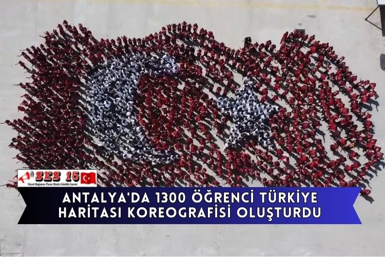 Okul bahçesinde 1300 öğrencinin katılımıyla Türkiye haritası koreografisi oluşturulması dronla görüntülendi. Öğrenciler marşlar söyleyip kutlama coşkusu yaşadı.