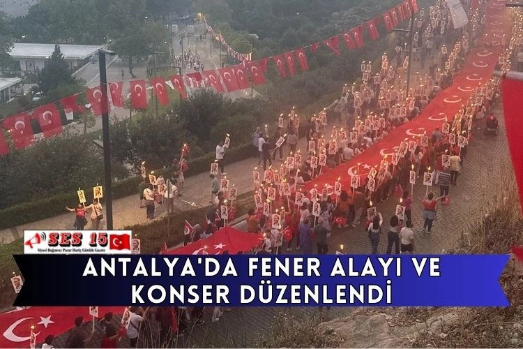 Büyükşehir Belediyesi tarafından Konyaaltı Caddesi'ndeki Varyant'ta düzenlenen fener alayı için Türk bayrağı, dövizler ve Gazi Mustafa Kemal Atatürk'ün fotoğraflarını taşıyan binlerce kişi, Konyaaltı Beach Park girişinde bir araya geldi.