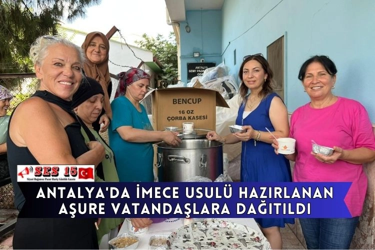 Muratpaşa Belediyesi'nin aşevinde pişirilen aşure, muhtarlık önünde kurulan masalarda vatandaşa dağıtıldı.