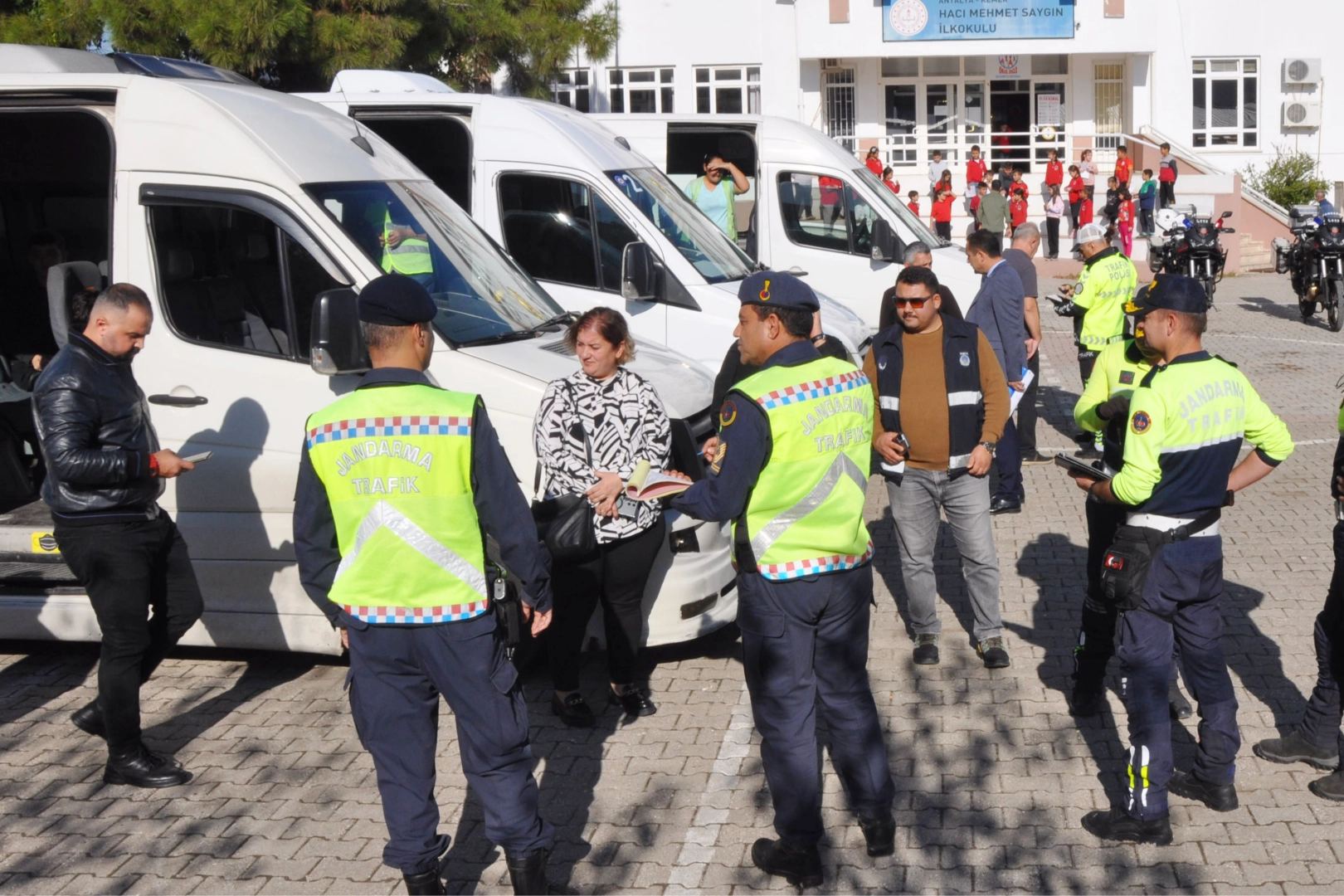 Kuzdere ve Tekirova mahallelerinde okul servislerine yönelik denetimlerde, ehliyet, muayene, emniyet kemeri, kamera, lastik ve yangın tüpü kontrolleri yapıldı.