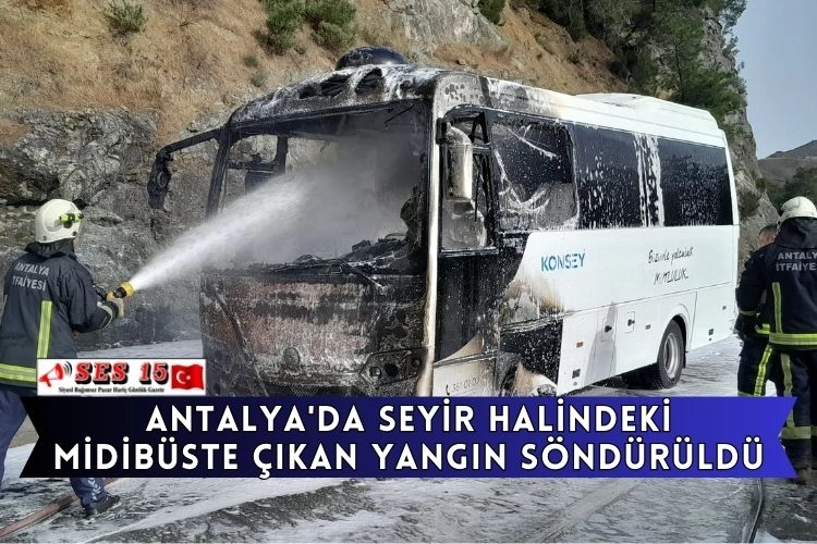 Edinilen bilgilere göre, Kemer-Antalya kara yolunda seyreden ve sürücüsünün kimliği öğrenilemeyen, 18 otel personelini taşıyan midibüsün motor kısmından alev çıkmaya başladı.