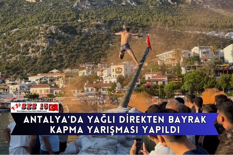 Balıkçı Barınağı'ndaki yarışmada, yağlı direkten bayrak kapmak için 40 kişi mücadele etti.