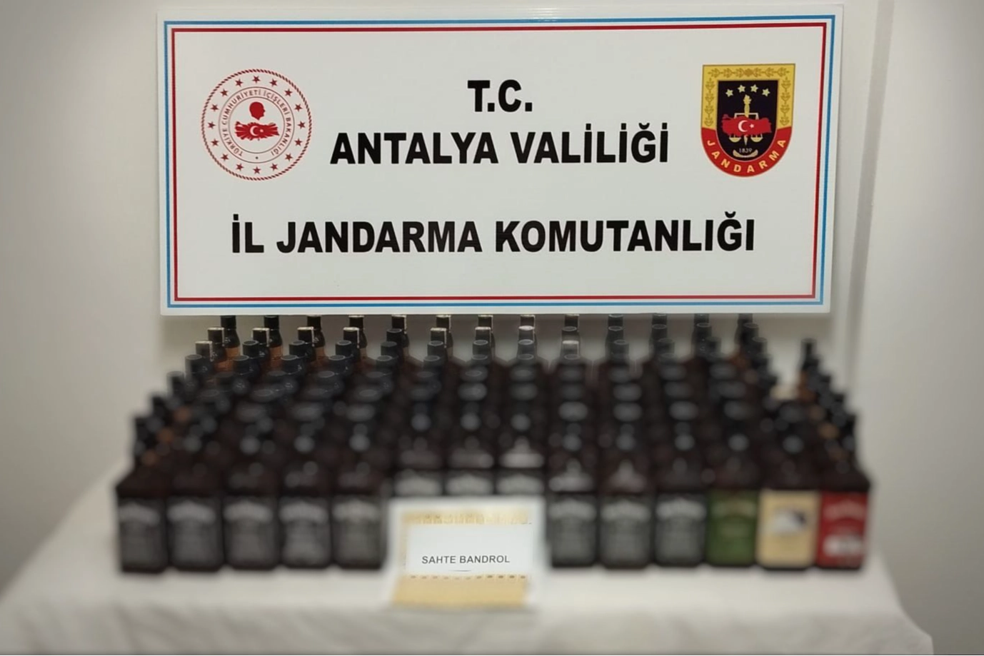 Akseki ilçesinde durdurulan otobüste yapılan aramada 93 litre kaçak alkol ile 6 sayfa sahte bandrol ele geçirildi.