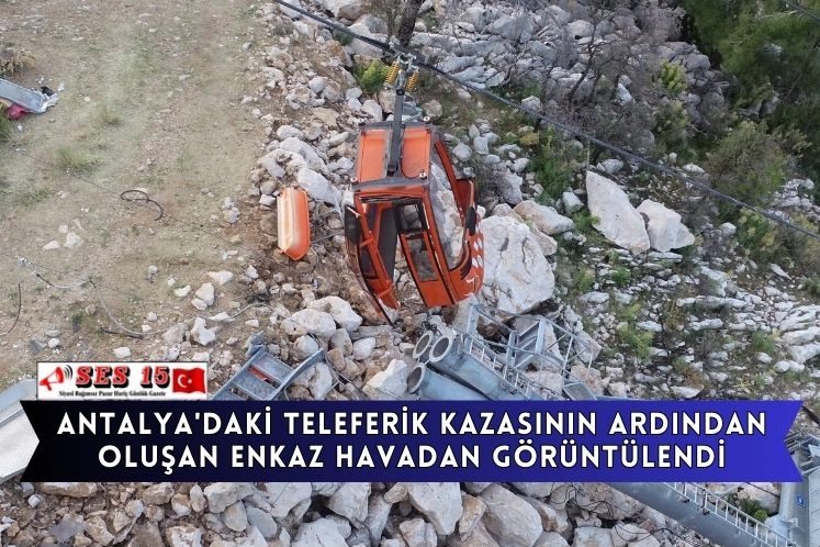 Teleferik sistemindeki direklerden birinin devrilmesinin yol açtığı kaza bölgesi havadan görüntülendi.