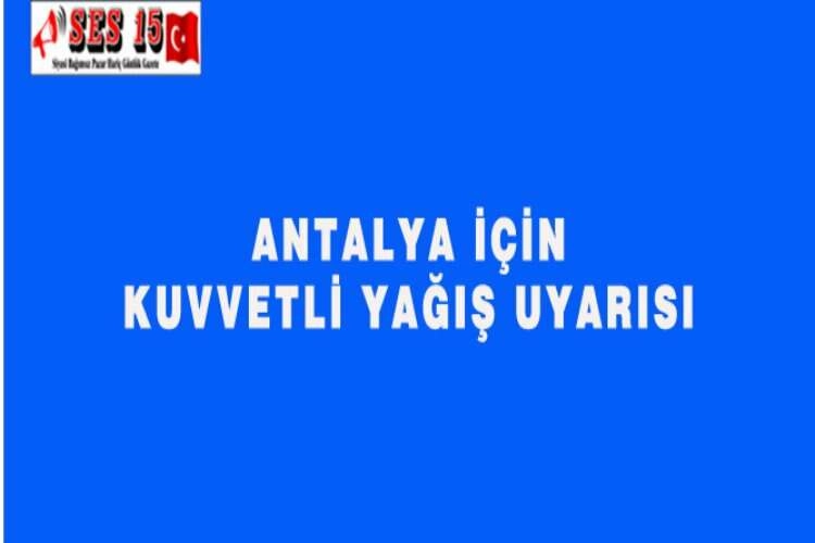 Antalya'da yarın, merkez ve batı ilçelerinde yerel çok kuvvetli, doğu kesimlerde yerel kuvvetli gök gürültülü yağış bekleniyor. Meteoroloji Genel Müdürlüğünün uyarısına göre, yarın Antalya'da beklenen gök gürültülü sağanağın merkez ve batı ilçelerinde yerel çok kuvvetli, doğu kesimlerde yerel kuvvetli olacağı tahmin ediliyor. Kuvvetli yağışların, pazartesi günü sabah saatlerine kadar aralıklarla devam etmesi bekleniyor. Sağanak nedeniyle ani sel, su baskını, yıldırım, yerel dolu, ani rüzgar, kısa süreli fırtına ve ulaşımda aksamalar gibi olumsuzluklara karşı dikkatli ve tedbirli olunması gerekiyor. AA
