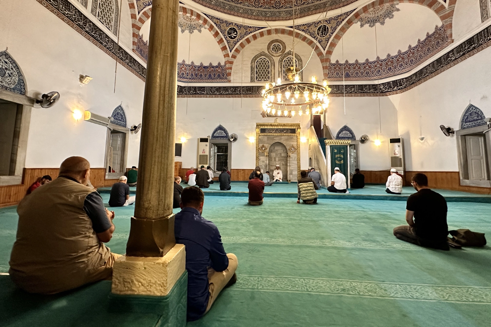 Muğla'nın Menteşe ilçesinde vatandaşlar, Şeyh Muslihittin Camisi'nde yatsı namazı için bir araya geldi.