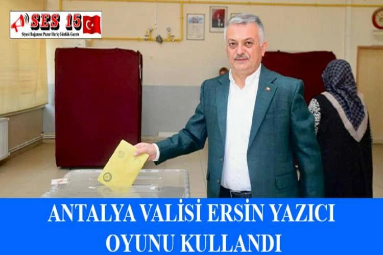 Antalya Valisi Ersin Yazıcı, Cumhurbaşkanı ve 28. Dönem Milletvekili Genel Seçimleri için oyunu kullandı. Yazıcı, oyunu kullanmak için eşi Hanife Yazıcı ile Konyaaltı Caddesi'ndeki Antalya Mesleki Teknik ve Anadolu Lisesi'ne geldi. Oyunu kullanan Yazıcı, ardından gazetecilere yaptığı açıklamada, seçimlerin Türkiye'ye ve millete hayırlı uğurlu olması temennisinde bulundu. Seçimlere ilişkin kentte güvenlik tedbirlerini aldıklarını ifade eden Yazıcı, "Kentte 2 bin 488 jandarma, 6 bin 557 de polis memuru görev yapıyor. Seçim güvenliğiyle ilgili herhangi bir sıkıntımız yok. Seçim sonuçları herkese hayırlı olsun." dedi. AA