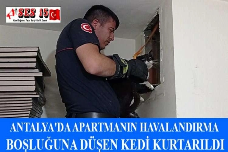 Antalya'nın Alanya ilçesinde bir apartmanın havalandırma boşluğuna düşen kedi itfaiye ekiplerince kurtarıldı. Şekerhane Mahallesi Eczacılar Sokak'taki bir apartmanda havalandırma boşluğundan kedi sesi geldiğini fark eden bina sakinleri durumu yetkililere bildirdi. Bölgeye gelen Antalya Büyükşehir Belediyesi Alanya İtfaiye Birimi ekibi, yavru kediyi sıkıştığı yerden çıkardı. Kedi, yapılan kontrollerin ardından doğal yaşam alanına bırakıldı. AA