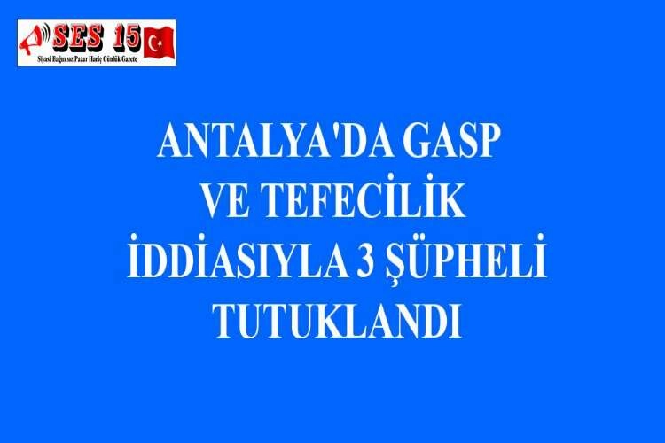 Antalya'da gasp ve tefecilik iddiasıyla gözaltına alınan 4 zanlıdan 3'ü tutuklandı. Müşteki F.İ, iş yerine gelen S.A, Y.Y, E.Y.G. ve F.T'nin silahla tehditte bulundukları ve kendisinden para istedikleri iddiasıyla Antalya Cumhuriyet Başsavcılığına başvurarak şikâyette bulundu. Bunun üzerine çalışma başlatan Asayiş Şube Müdürlüğü Gasp Büro Amirliği ekipleri, zanlıların yakalanması için çalışma yürüttü. Operasyon düzenleyen polis ekipleri zanlıları suçta kullanılan silahla gözaltına aldı. Emniyetteki işlemlerin ardından adliyeye sevk edilen zanlılardan S.A, Y.Y. ve E.Y.G. çıkarıldıkları nöbetçi sulh ceza hâkimliğince tutuklandı, F.T. ise adli kontrol şartıyla serbest bırakıldı. AA