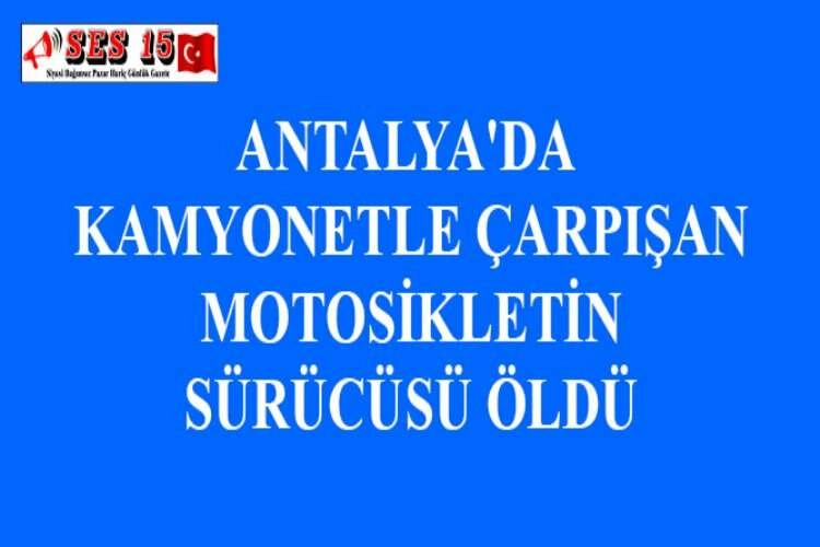 Antalya'nın Aksu ilçesinde kamyonetle çarpışan motosikletin sürücüsü kaldırıldığı hastanede yaşamını yitirdi. Çalkaya Mahallesi Serik Caddesi'nde Hakan Uysal'ın (25) kullandığı 07 AZH 781 plakalı motosiklet ile K.S.K'nin kullandığı 07 NZ 400 plakalı kamyonet çarpıştı. Kaza sonrası motosiklet sürücüsü Uysal yola savrularak ağır yaralandı. Çevredekilerin ihbarı üzerine kaza yerine polis ve sağlık ekipleri sevk edildi. Sağlık ekipleri tarafından kaza yerinde kalp masajı yapılan Uysal, ambulansla hastaneye kaldırıldı. Uysal, tüm müdahaleye rağmen hastanede hayatını kaybetti. Uysal'ın cenazesi otopsi yapıldıktan sonra yakınlarına teslim edildi. Kamyonet sürücüsü ise ekipler tarafından emniyete götürüldü. Öte yandan hayatını kaybeden Uysal'ın bir otelin yangına müdahale ekibinde çalıştığı ve motosikletiyle işe gittiği öğrenildi. AA