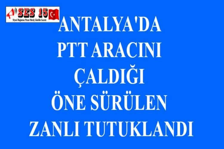 Antalya'nın Konyaaltı ilçesinde, PTT'ye ait kargo aracını çaldığı iddiasıyla gözaltına alınan zanlı tutuklandı. İl Emniyet Müdürlüğü Asayiş Şube Müdürlüğü ekipleri, PTT'ye ait kargo aracının çalındığı ihbarı üzerine çalışma başlattı. Ekipler, Kültür Mahallesi'nde terk edilmiş halde buldukları aracı İ.K'nin çaldığını tespit etti. Yapılan çalışmada zanlı İ.K, Muratpaşa ilçesi Tahılpazarı Mahallesi'nde gözaltına alındı. Emniyetteki işlemlerin ardından adliyeye sevk edilen zanlı, çıkarıldığı nöbetçi sulh ceza hakimliğinde tutuklandı. AA