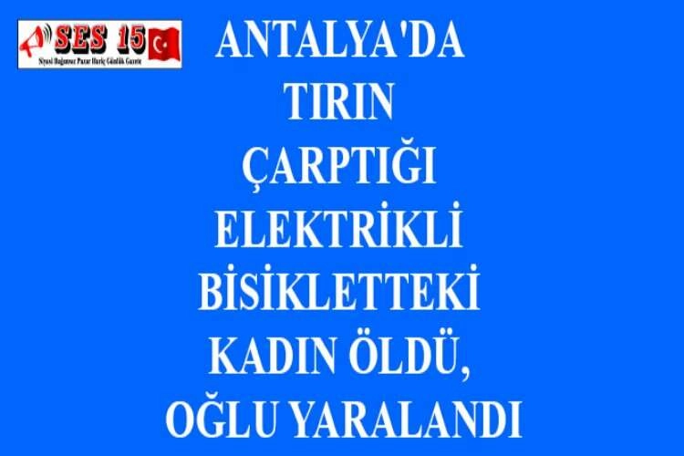 Antalya'nın Alanya ilçesinde tırın çarptığı elektrikli bisikletteki anne öldü, oğlu yaralandı. Elikesik Mahallesi'ndeki tünelde A.S. (27) idaresindeki 31 AFL 17 plakalı tır, aynı istikamette ilerleyen Ayşe Güven'in (48) kullandığı elektrikli bisiklete çarptı. İhbar üzerine bölgeye polis ve 112 Acil Sağlık ekipleri sevk edildi. Kazada yaralanan Ayşe Güven ile bisiklette yolcu olarak bulunan 14 yaşındaki oğlu A.E.G, yaralandı. Sağlık ekiplerince hastaneye kaldırılan yaralılardan anne, kurtarılamadı. Tır şoförü gözaltına alındı. AA