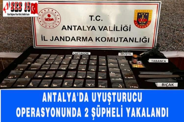 Antalya'da uyuşturucu operasyonunda 2 şüpheli gözaltına alındı. İl Jandarma Komutanlığı ekipleri, kentte uyuşturucu ticareti ve satışının önlenmesine yönelik çalışma başlattı. Ekipler yüklü miktarda uyuşturucunun piyasaya sürüleceği bilgisi üzerine harekete geçti. Kepez ilçesinde belirlenen adreslere düzenlenen operasyonda 1020 uyuşturucu hap ele geçirdi. Ekipler 2 şüphleliyi gözaltına aldı. AA