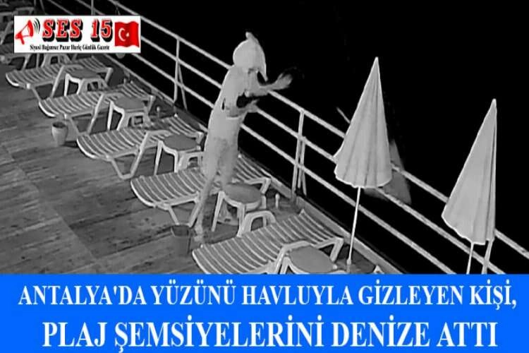 Antalya'nın Muratpaşa ilçesinde yüzünü havluyla kapatan kişinin, halk plajındaki şemsiyeleri denize attığı anlar kameraya yansıdı. Muratpaşa Belediyesinin işlettiği Konserve Koyu Falez Plajı'na gece gelen kişi, yüzünü havluyla kapatarak kameraya karşı bir süre dans etti. Ardından şezlongların yanındaki tüm şemsiyeleri falezlerden denize atan şüpheli, bölgeden ayrıldı. Olay anı, plajın güvenlik kamerasınca kaydedildi. Öte yandan, İlçe Belediye Başkanı Ümit Uysal, sosyal medya hesabından yaptığı paylaşımda, halkın uygun fiyata kullanması için açtıkları plaja çirkin saldırı olduğunu bildirdi. Tüm şemsiyelerin denize atılarak plaja zarar verildiğini belirten Uysal, saldırıyı kınadığını ifade etti. AA