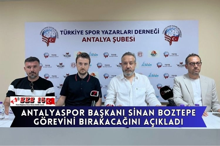 Antalyaspor AŞ Başkanı Boztepe, Türkiye Spor Yazarları Derneği (TSYD) Antalya Şubesi'nde düzenlediği basın toplantısında görevini bırakacağını bildirdi.