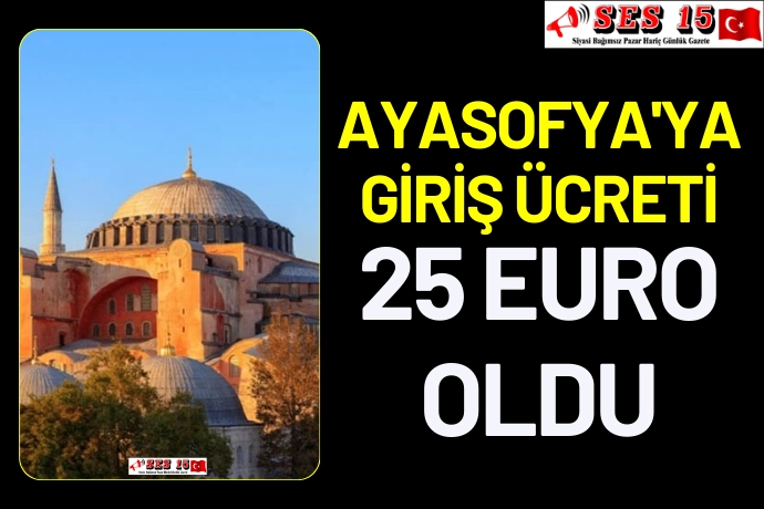 Turistlerden için Ayasofya’ya giriş ücreti 25 Euro (823,75 Türk Lirası) olarak belirlendi. Uygulama 15 Ocak 2024’te başlayacak. Konuya dair Kültür ve Turizm Bakanlığı tarafından verilen 11 Ocak 2024 tarihli kararda şu ifadelere yer verildi: