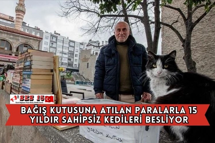 Tarihi caminin avlusunu çevreleyen duvar üzerine dizdiği kitapların yanına "Kediler İçin Yardım Kutusu" yazılı kutu koyan 60 yaşındaki Gürsoy, esnaf ve cami cemaatinden topladığı paralarla sahipsiz kediler için yiyecek alıyor.