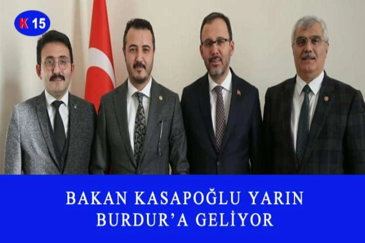 Türkiye Gençlik ve Spor Bakanı Mehmet Muharrem Kasapoğlu, yarın Burdur’a geliyor. Bakan Kasapoğlu’nun geleceğini sosyal medya hesabı üzerinden duyuran AK Parti Burdur Milletvekili Yasin Uğur yaptığı paylaşımda; “Gençlik ve Spor Bakanımız Dr. Mehmet Muharrem Kasapoğlu 07.01.2021 Perşembe (yarın) güller, göller ve gönüller diyarı Burdur’umuza geliyor” diyerek. Programları kapsamında; -Burdur Valiliği ziyareti -Merkez Spor Salonu açılışı -MAKÜ Genç Ofis açılışı -Bucak Belediyesi ziyareti’nin yapılacağını söyledi.