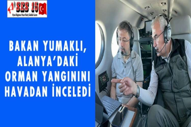 Tarım ve Orman Bakanı İbrahim Yumaklı, Antalya'nın Alanya ilçesindeki orman yangınını "Otağ" adlı ileri görüş sistemlerine sahip yangın yönetim uçağıyla havadan inceledi. Bakan Yumaklı, Üzümlü Mahallesi Dim Barajı kıyısında bulunan Akköprü mevkisindeki ormanlık alanda çıkan ve rüzgarın etkisiyle Gümüşkavak Mahallesi'ne de sıçrayan yangın bölgesine geldi. Yangından zarar gören yerleri ve yangınla mücadeleyi "Otağ" adlı ileri görüş sistemlerine sahip yangın yönetim uçağıyla inceleyen Yumaklı, beraberindeki Orman Genel Müdürü Bekir Karacabey'den söndürme çalışmalarına ilişkin bilgi aldı. AA