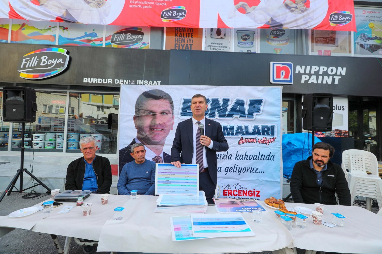 Başkan Ercengiz, “Kentimiz büyüyor ve gelişiyor. Bizler de kentimizdeki değişim sürecini halkımızın istekleri ve halkımızın bakış açısına göre çalışmalarımızı planlayıp, hayata geçiriyoruz. Burdur halkımız çok duyarlı, aydınlatma ışıklarının ampulü patlasa vatandaşımız hemen arayıp, ekiplerimize haber veriyor. Bu duyarlılık bize hizmet etme konusunda yol gösterici oluyor. Esnaf toplantılarımızın da en büyük amacı sizinle yüz yüze talepleri almak, şikayetleri dinlemektir. Maliyetleri hesap ederek, yatırımlarımızı hayata geçirmeye çalışıyoruz. Sizinle bir araya gelmekten büyük mutluluk duyuyorum” dedi.