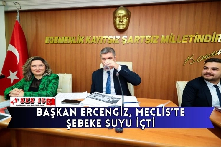 Başkan Ercengiz, çeşmeden getirilen suyun sertliğini ölçtürdükten sonra meclis üyelerini önünde içti.