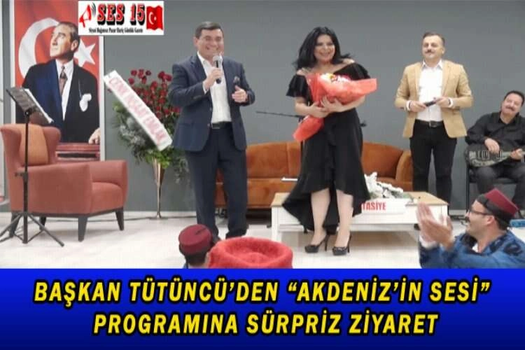 Kanal 15 Televizyonunda 15 günde bir Çarşamba akşamları yayınlanan “Özlem Şahin’le Akdeniz’in Sesi” programı Çarşamba akşamı yeni bölümüyle Kanal 15 ekranlarında izleyiciyle buluştu. Kepez Neşet Ertaş Sivil Toplum Kuruluşları Merkezi’nde düzenlenen programa canlı yayında sürpriz ziyaret yapan Kepez Belediye Başkanı Hakan Tütüncü, yeni yayın sezonuna başlayan Akdeniz’in Kızı Özlem Şahin’i tebrik ederek çiçek verdi. Akdeniz’in Sesi programının canlı yayınlarını Kepez’de yapacak olan Özlem Şahin’e teşekkür ederek türkülerin Türk Kültüründeki yeri ve önemi hakkında konuştu. Özlem Şahin, programa katılan ve destek veren Kepez Belediye Başkanı Hakan Tütüncü’ye teşekkür etti.