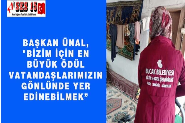 Bucak Belediyesi evde Temizlik Hizmeti projesi kapsamında yaşlı ve engelli vatandaşların evlerinde temizlik hizmetini sürdürüyor. Konuyla ilgili olarak sosyal medya üzerinden paylaşımda bulunan Bucak Belediye Başkanı Emrullah Ünal, "Bizim için en büyük ödül vatandaşlarımızın gönlünde yer edinebilmek. Vatandaşlarımızın hayır duasını almak: İşte o bize yetiyor" dedi. MEHMET SEVİNÇ