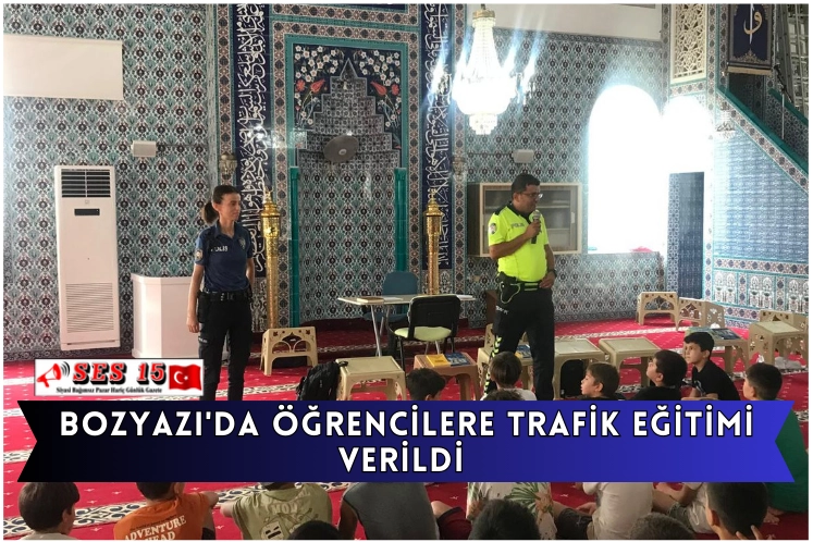 Kur'an-ı Kerim kursuna katılan öğrencilerle bir araya gelen ekipler, trafik kuralları hakkında bilgi verdi.